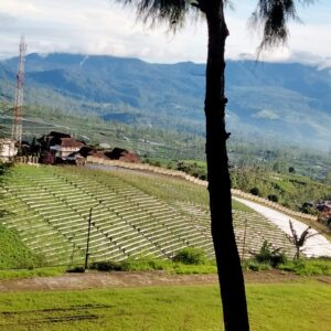 Panorama yang dapat disaksikan selama kegiatan camping berupa hamparan pegunungan dengan view perkebunan di bagian bawahnya yang tampak hijau memanjakan mata.