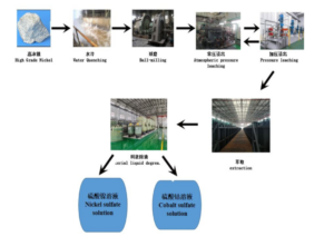 Prosesnya melibatkan pengeringan bijih limonit hingga tingkat kelembaban 20-26 persen, pemanggangan material kering di sistem tanur putar, kemudian dimasukkan ke dalam tanur tiup samping dengan oksigen untuk menghasilkan nickel matte.